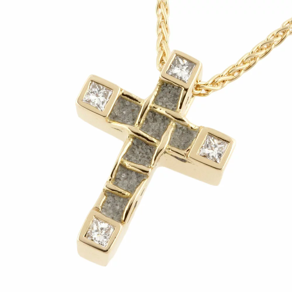 ペンダントの四方に埋め込まれたプリンセスカットのダイヤがとても綺麗ですよ!